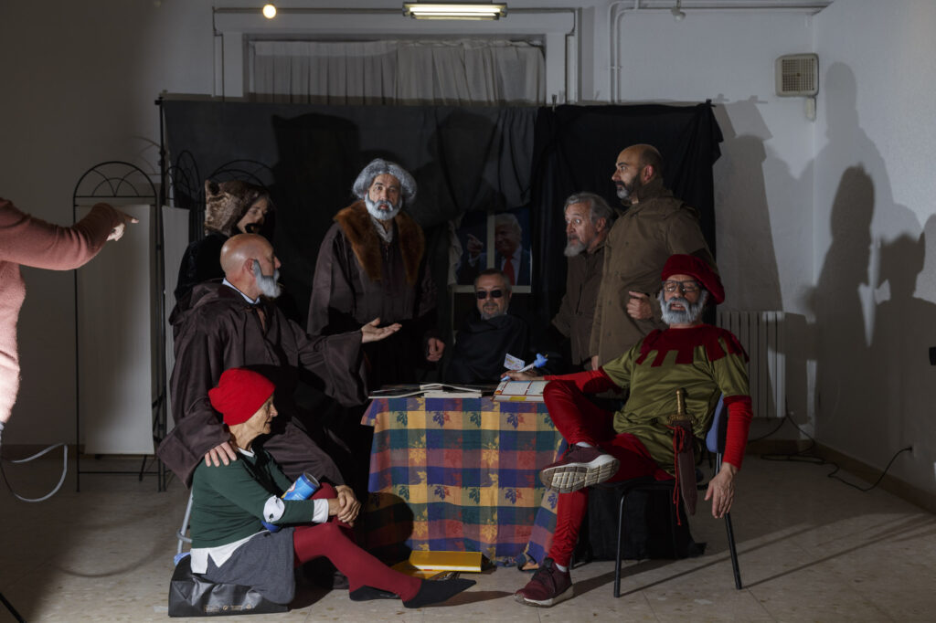 En el grupo de fotografía, Expresión 2, de La Vidriera, surgió la idea de realizar un trabajo, tomando como base una obra de pintura. Interpretaríamos el cuadro siendo nosotros los personajes y conseguiríamos la luz y las iluminaciones de la pintura mediante flashes externos.