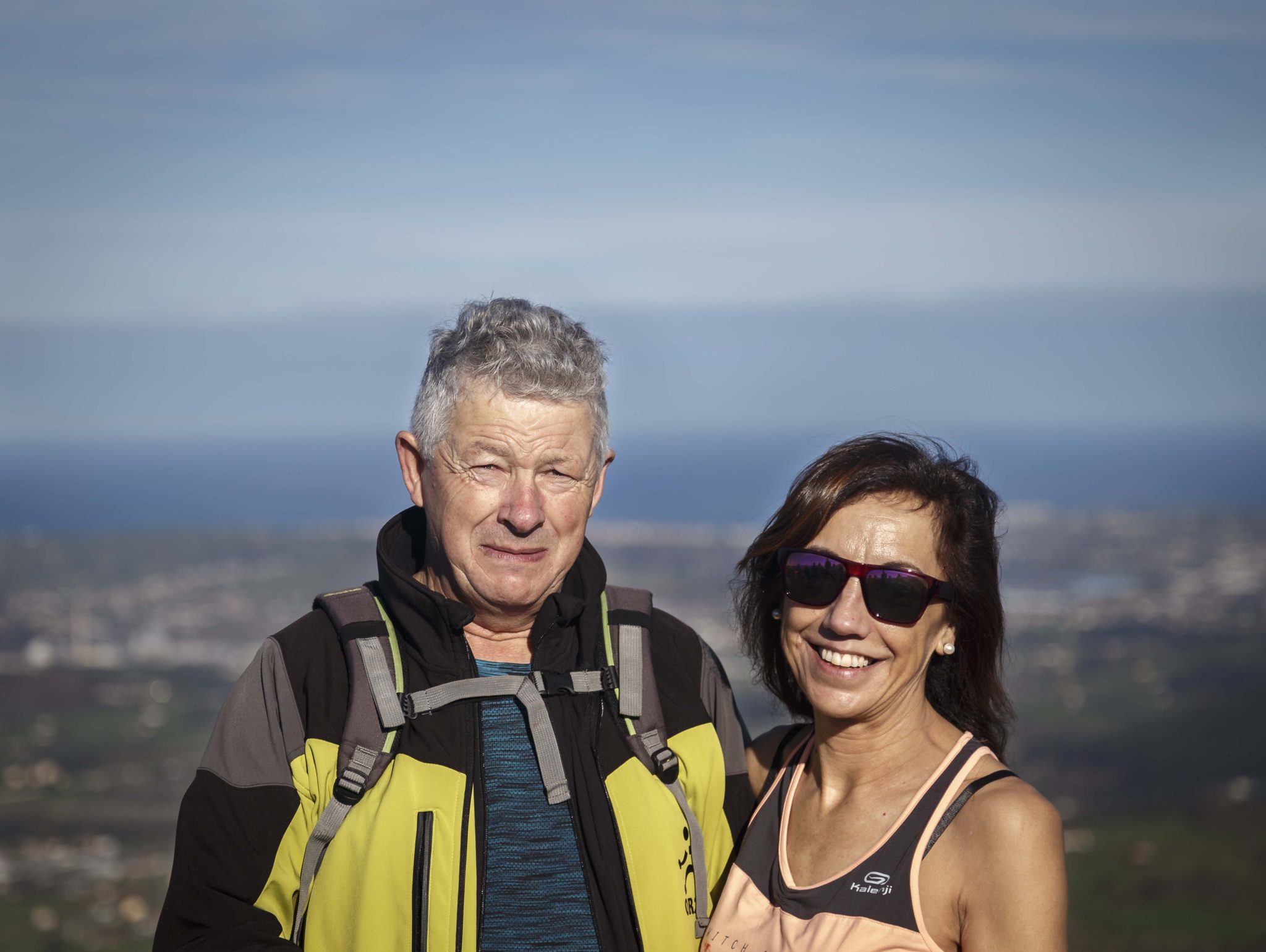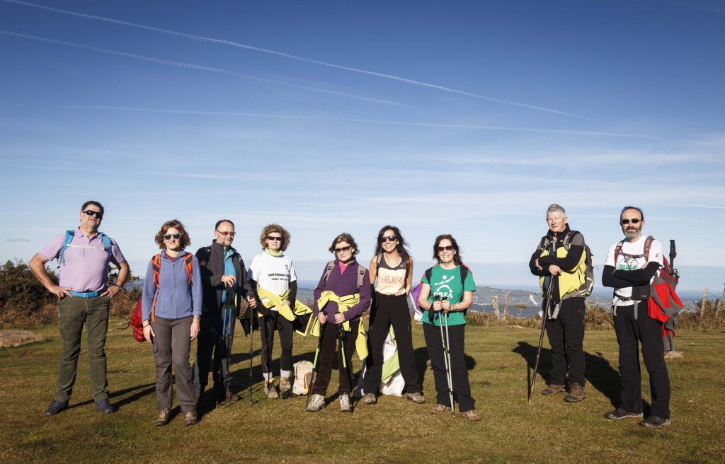 El último tramo, hasta la cruz de la cima, es un poco más complicado por la estrechez del sendero y las rocas que lo dificultan; pero al fin alcanzamos la cumbre. El sol radiante y la limpieza del cielo nos dejan disfrutar de un agradable espectáculo. Primero una foto de conjunto…