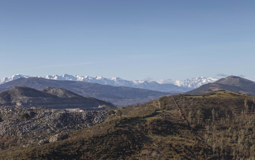 Subimos despacio, no sólo por la pendiente, que es considerable, sino también por las paradas para contemplar el entorno del monte Dobra, las nieves de Alto Campóo y Picos de Europa así como Santander y la Bahía.