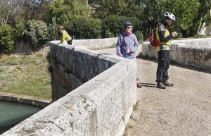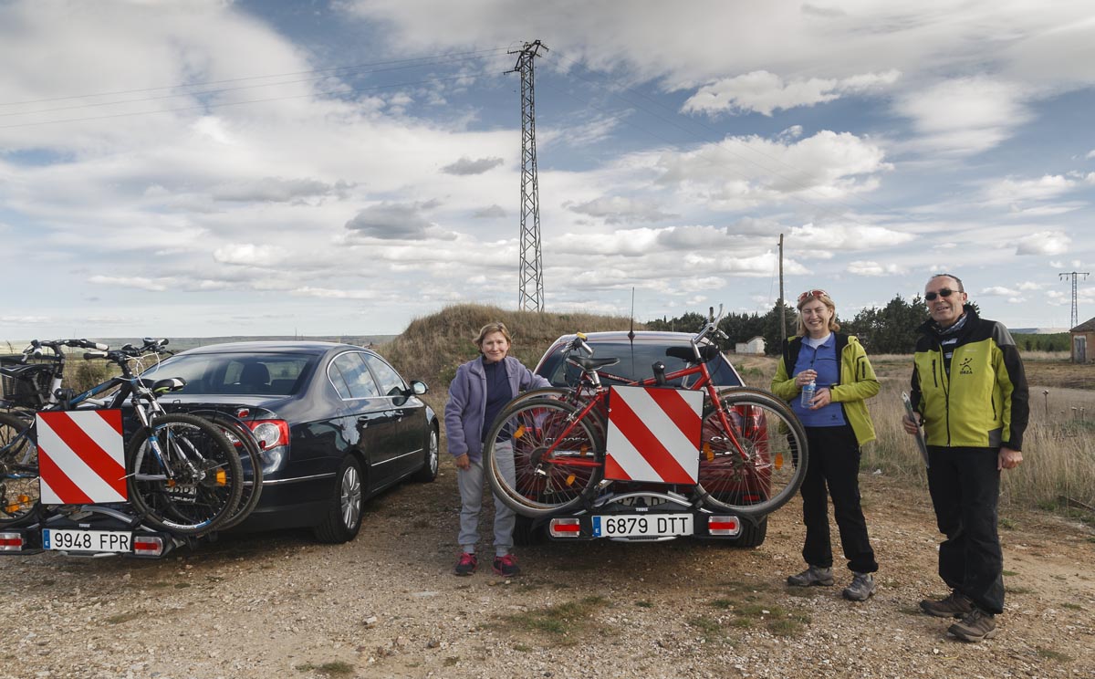 Es la hora de volver; decidimos acortar el camino para evitar tanta piedra suelta que hace que se resientan las posaderas más curtidas. Tomamos la carretera que va desde Becerril hasta el puente de Valdemudo. Aquí escogemos, para variar, la margen izquierda del canal y no nos detenemos hasta Calahorra de Ribas. Recogemos y cargamos las bicicletas y nos demoramos todavía un rato admirando de nuevo las esclusas.