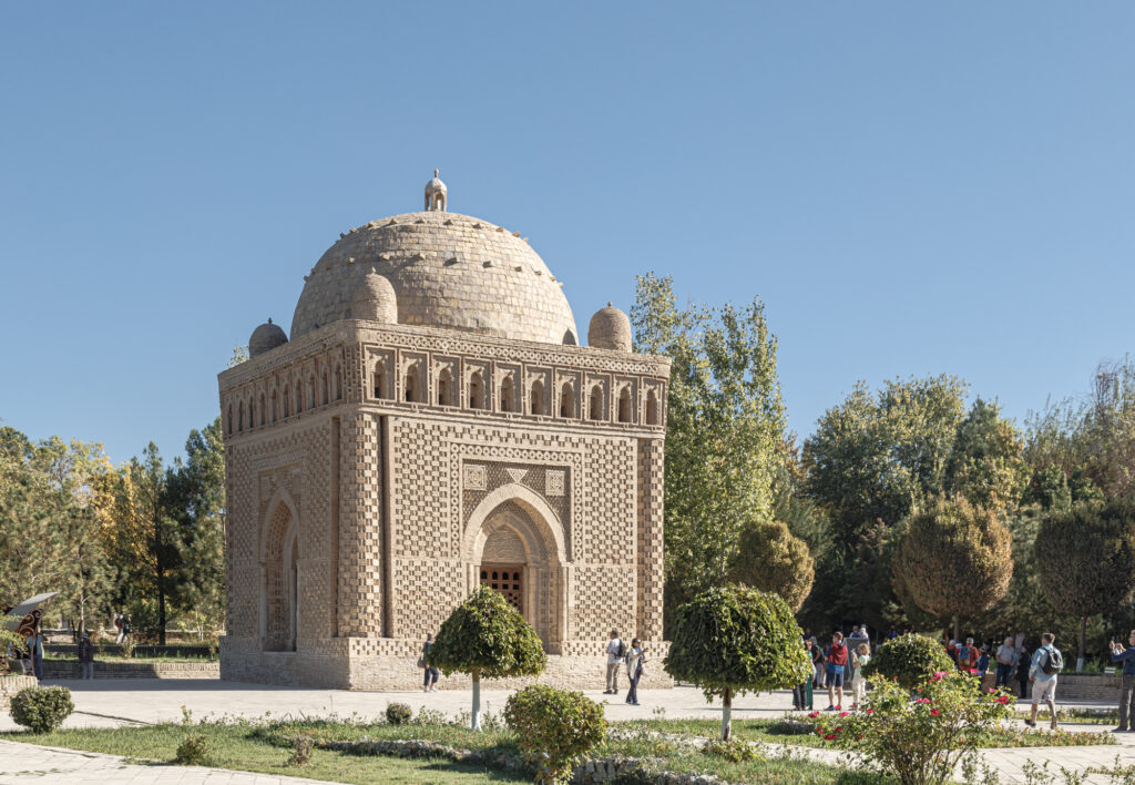 Cerca se encuentra el Mausoleo de los Sasánidas hasta el que nos desplazamos dando un pequeño paseo. Fue construido entre los siglos IX y X como tumba del emir Ismail Samani. En el están también enterrados algunos miembros de su familia y otros emires de la dinastía. Casi al lado encontramos otro mausoleo, el de Chasmai Ayub conocido como la fuente y manantial sagrado del santo Job.