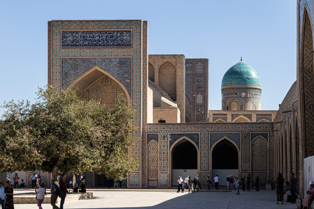 En bus llegamos al complejo de Poi Kalon que incluye el minarete Kalon, del siglo XII, la mezquita Poi-Kalon y la Madraza Miri Arab; esta sigue funcionando como escuela coránica.