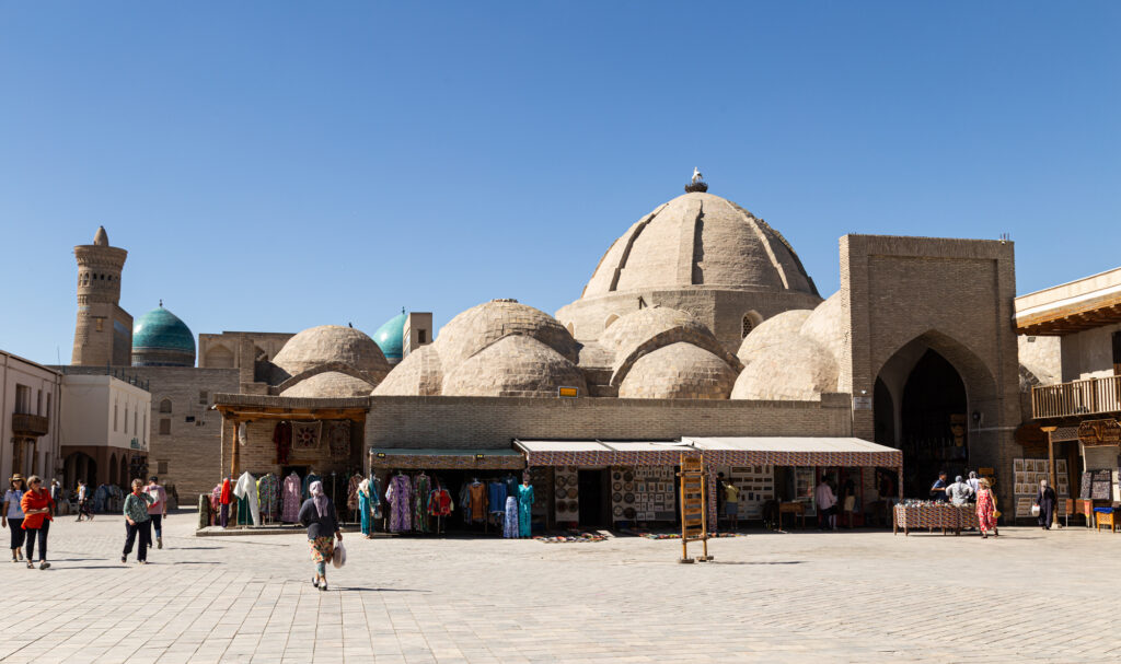 Bukhara es uno de los grandes hitos en la Ruta de la Seda. Parece que el origen de su nombre está en «bujarak» que significa lugar de la Fortuna.