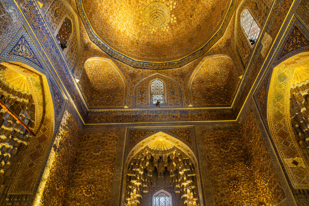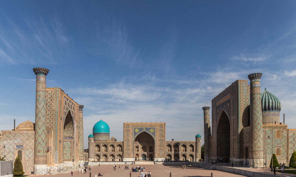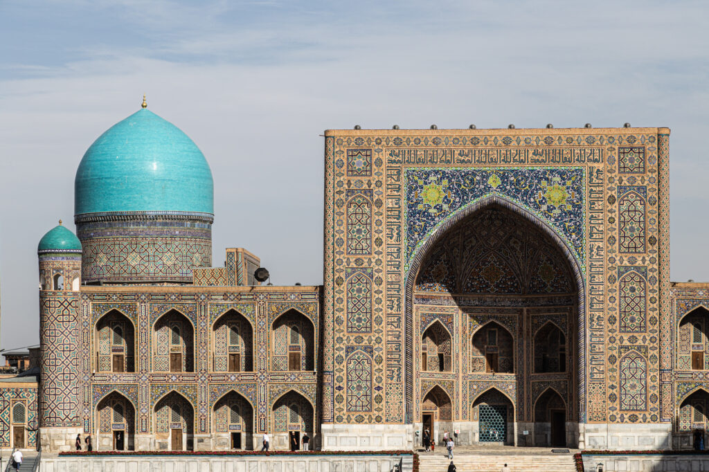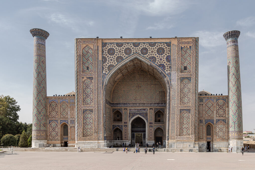 La historia de Samarcanda se remonta a miles de años atrás. Fue uno de los enclaves más importantes en la Ruta de la Seda y un centro destacado de comercio, cultura y aprendizaje en Asia Central. El siglo XIV es uno de los períodos de mayor esplendor. Es esta la época del Gran Tamerlán; convirtió Samarcanda en un centro cultural y arquitectónico de gran nivel, marcado por la construcción de monumentos y estructuras impresionantes.